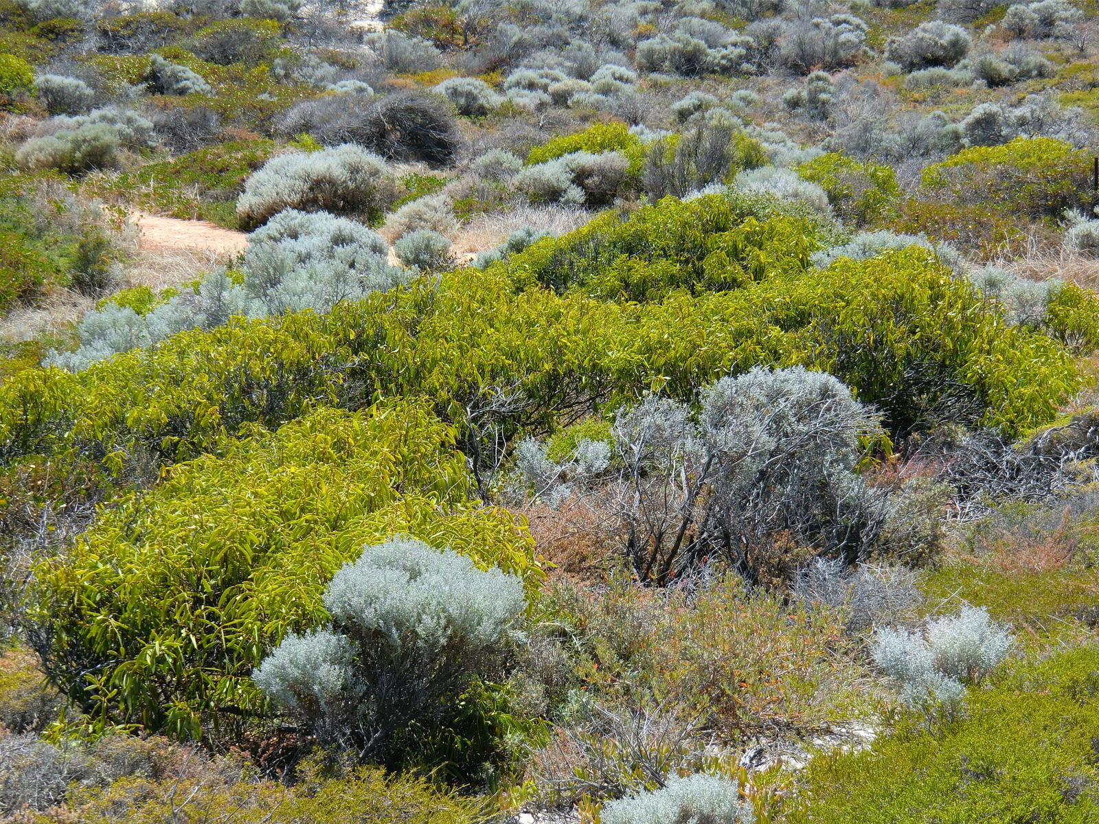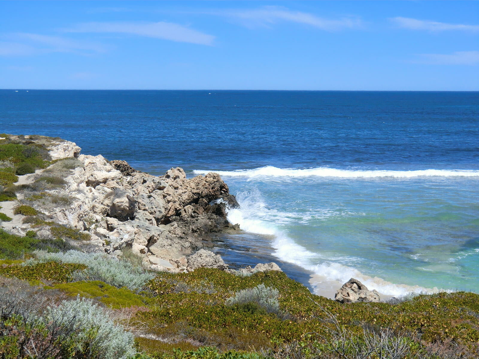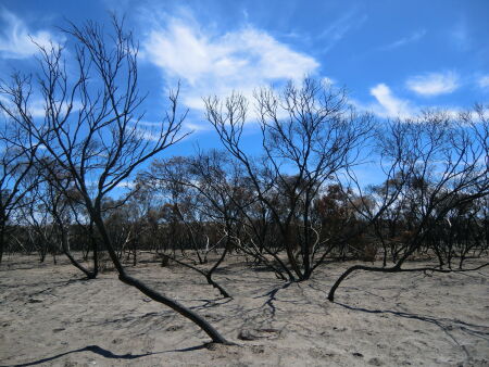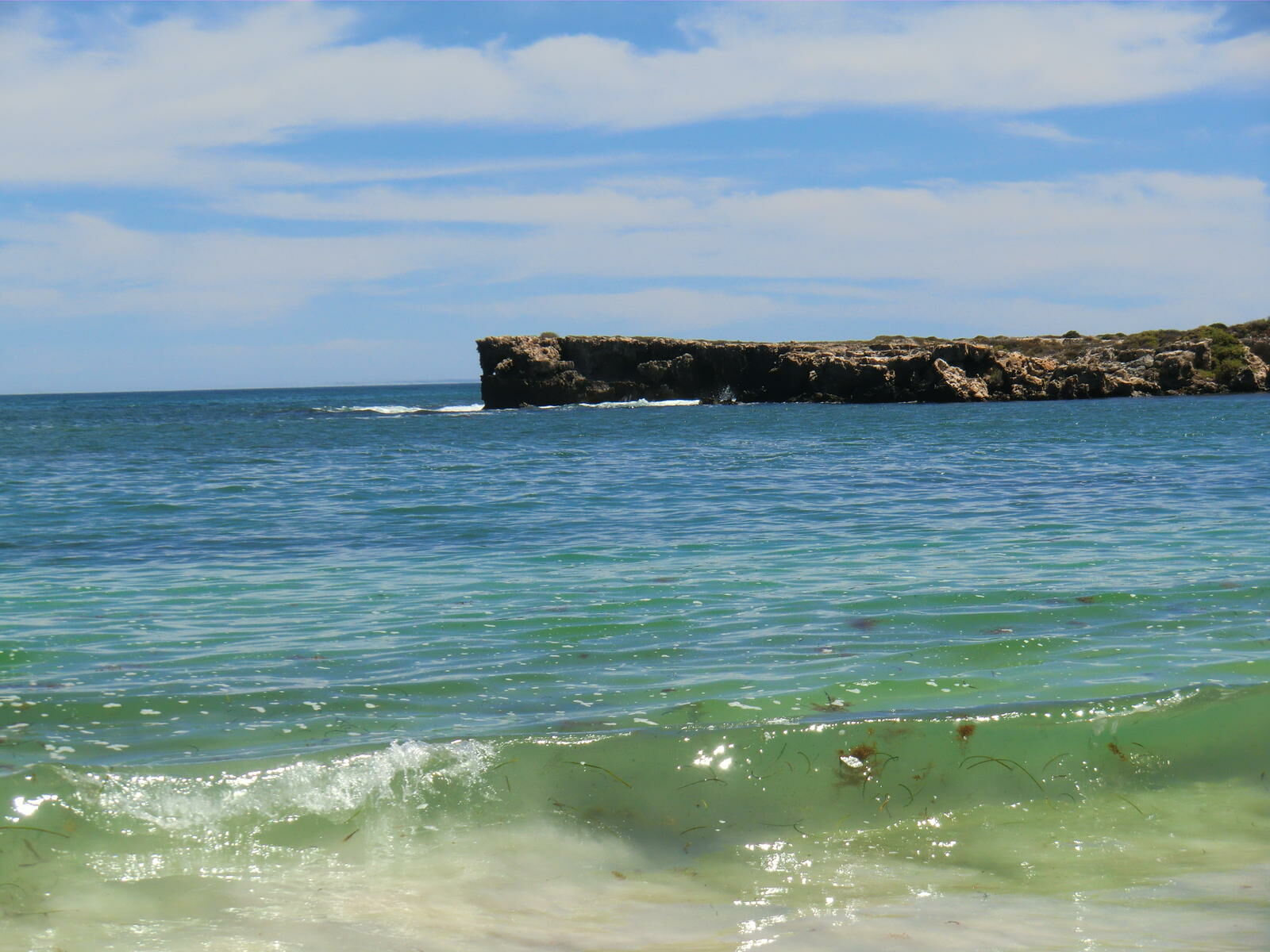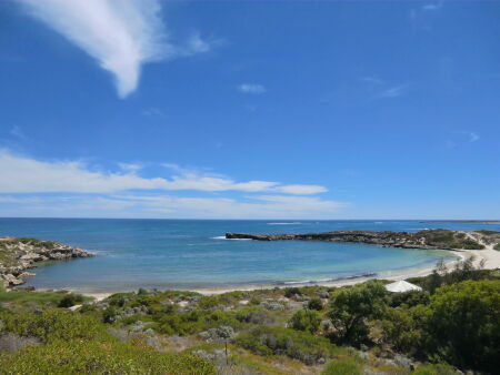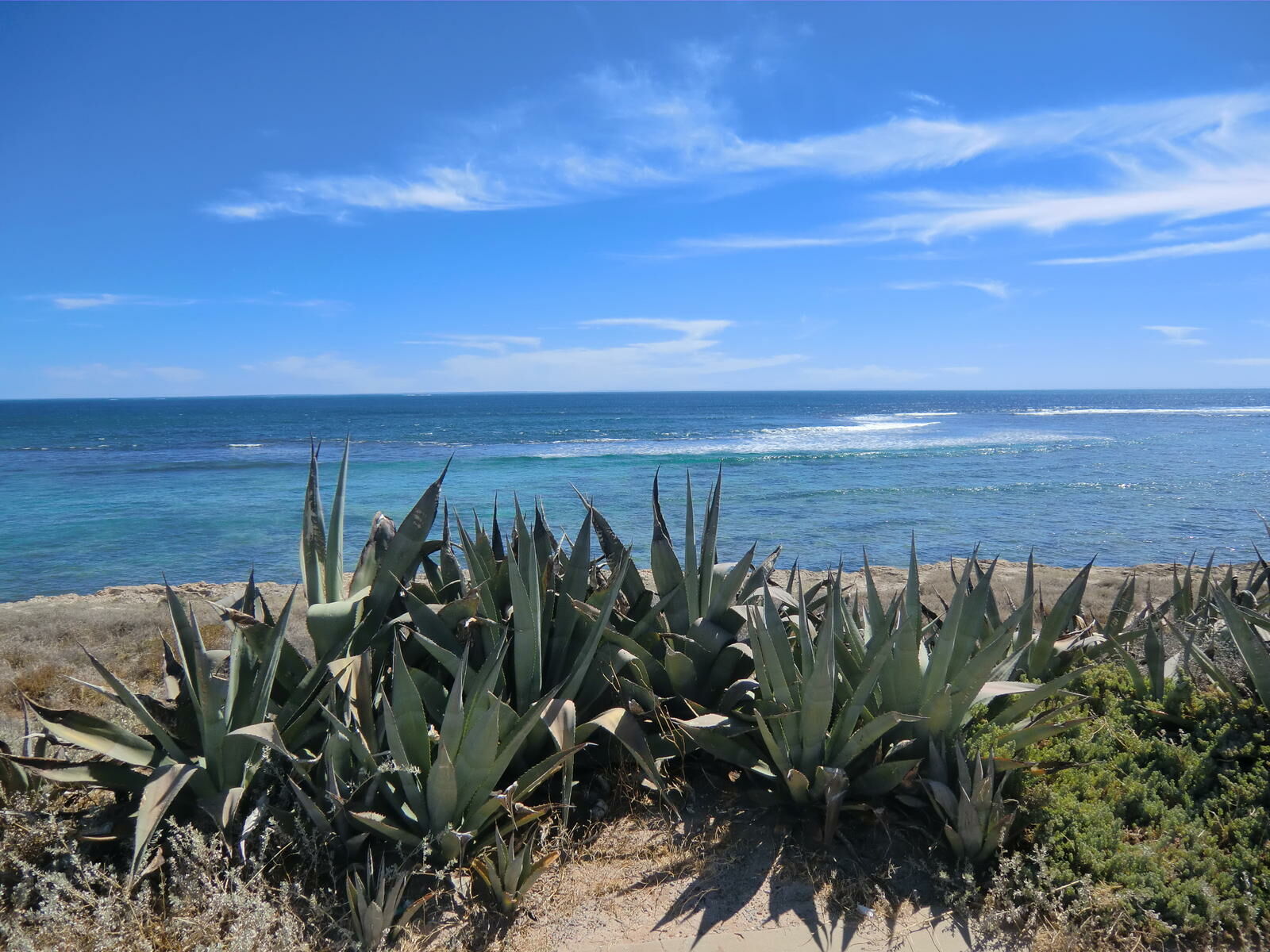After a night with little sleep, it was loud and could, we went northwards. First we drove a bit back as I had seen a road sign pointing to stromatoliths (living rocks). A sand road leads to Lake Theatis and the stromatoliths and we raised a lot of dust. A short path and boardwalk lead to the stomatoliths. We saw those rocks formed by micro organisms partially in the water and partially on the land. When we arrived a cormorant flew away. We hoped he would return as he would be nice on a photo. How should it be, after a while the bird came back. Our trip led with short photo stops to Jurie Bay. Here we granted our feet a cool bath in the sea. At time there is often a warm wind which makes the temperature more bearable, but we do not feel then how strong the sun is burning. On the way I stopped shortly to take pictures of trees which were partially burned from the last bush fire. When leaving the car I hit a wall of heat. We decided to drive to Geraldton As it was already late afternoon. At the tourist information we realized that the roof of the car was not completely closed. A closer look revealed that a clamp was missing. With the help of a ladder we saw that the moveable strut was bent and thus the roof could not anymore be closed completely. Many bird voices accompanied us on this carpark. In the trees we saw many white parrots. After we went directly to the camping to stay there overnight. The owner gave us the hint to immediately call Apollo and to explain the problem. Sandra called as her English is better. They explained us that it is too late to send someone to have a look. The office would contact us tomorrow. With a fine dinner and Australian wine we finished this evening.