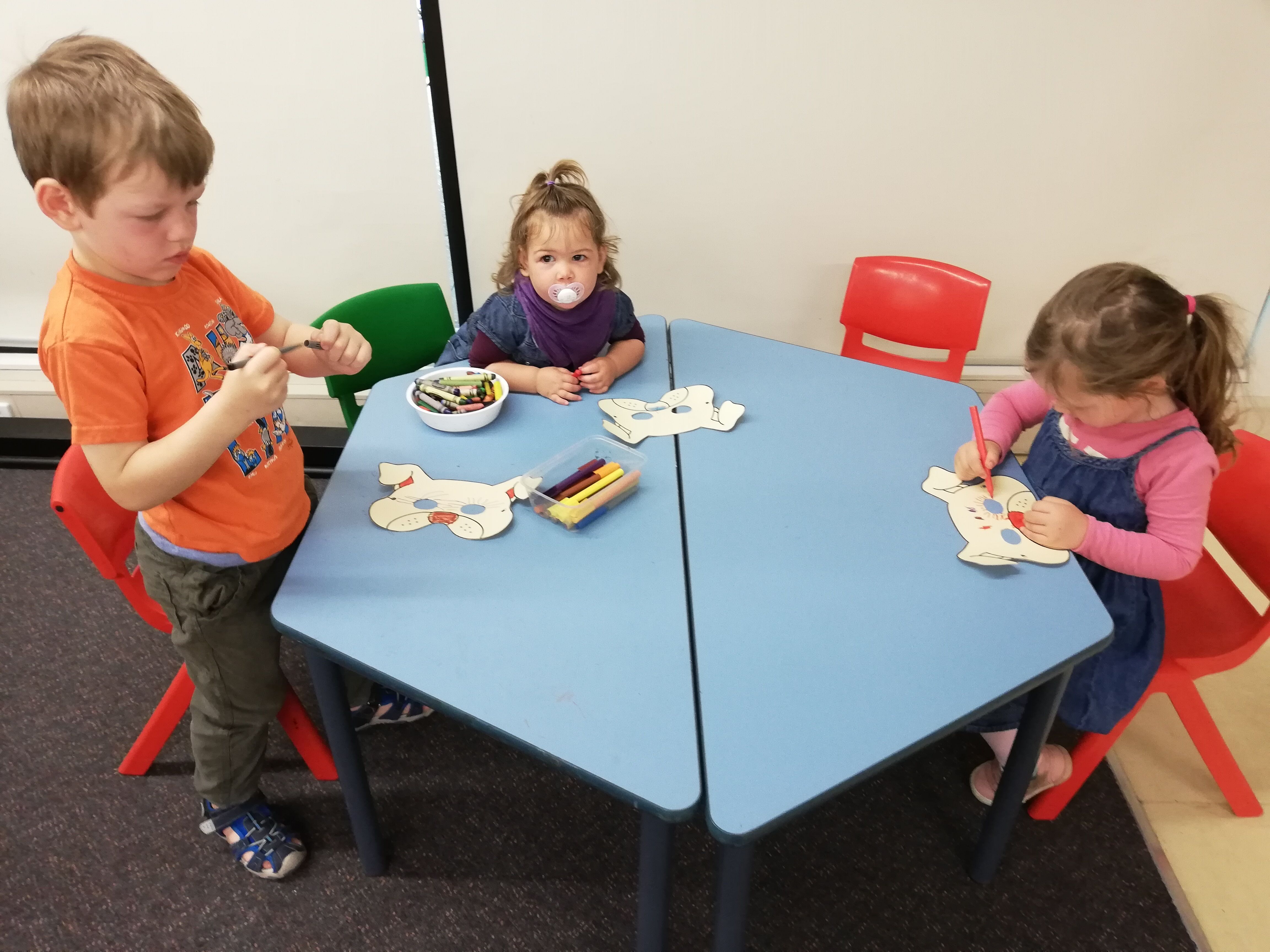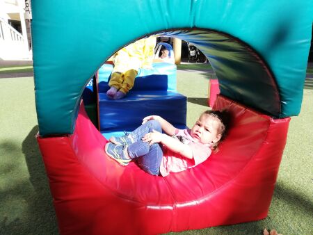 There is a main topic each quarter with weekly subtopics. Since the last holidays this are the colours. On some days there is an additional programme, like dancing, gymnastics or singing nursery rhymes. Each family pays a small fee. Also last time I often visited the playgroup. As Erica, a employee of the centre, said my name as I registered on the first visit there. She said there were not that many families visiting the plagroup regularly at that time and as Swiss we were exots, so she could remember. The children like the place and enjoy to go there.
