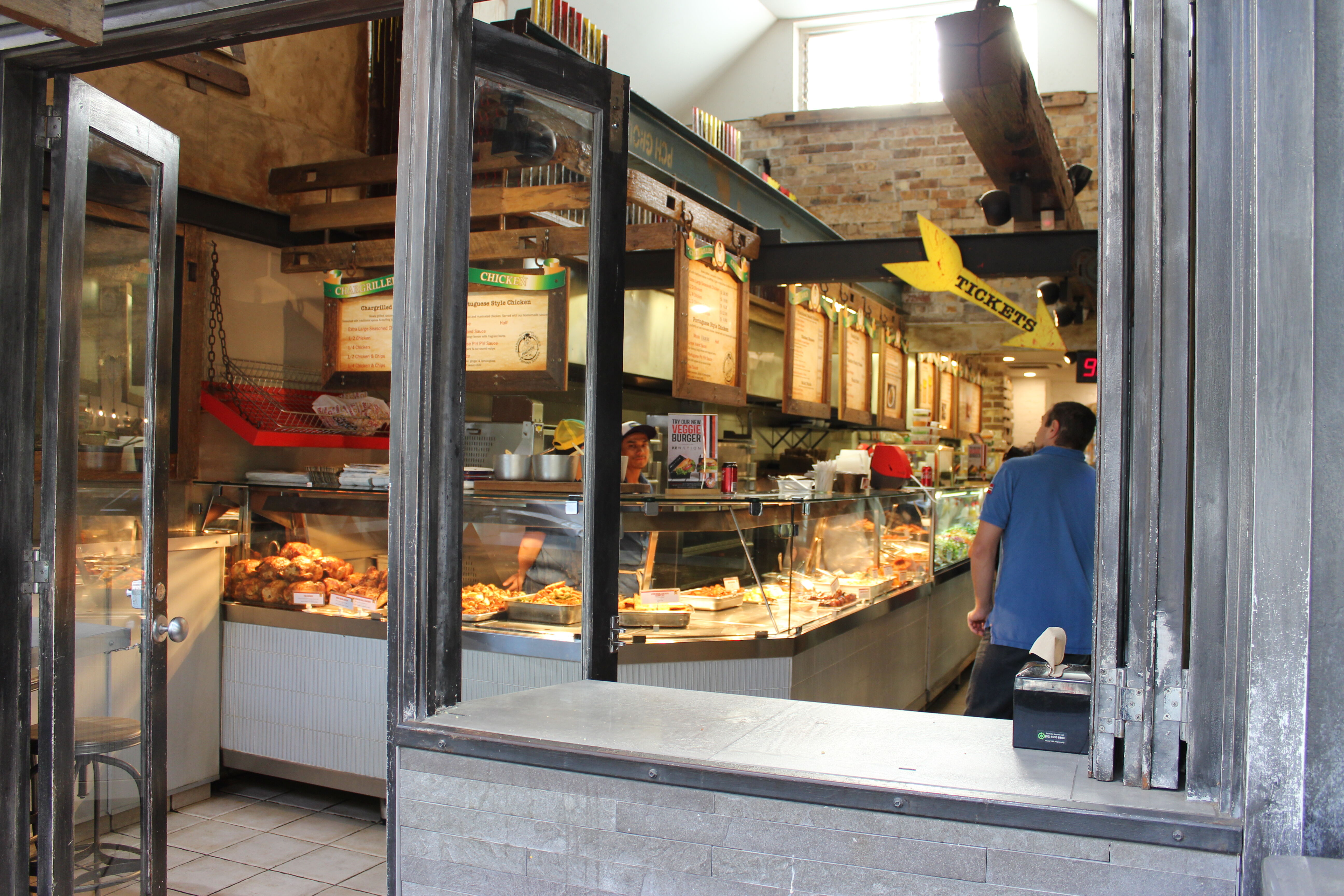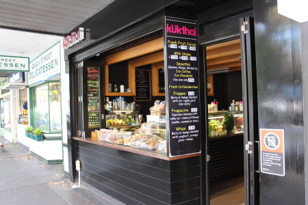 If we stay nearby we normally have lunch together with Konrad and his workmates. Then we buy food at Queen Street. The kids mostly want chips or spaghetti. Jann also tried tuna sushi or sandwich. We adults enjoy chicken in all variations with salad from "Chicken Charly", fish n' chips or Thai food.