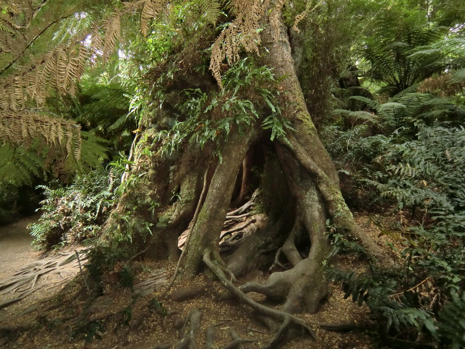 Die Warteschlange vor der Autovermietung war sicher deshalb etwas länger. Nachdem wir unser Auto hatten, ging es los Richtung Anglesea. Irgendwie wollten die Melbourner auch aus der Stadt und so gab es immer wieder Stockungen auf der Strasse. Immer wieder hielten wir an Aussichtspunkten an. Nach dem Mittag sahen wir den Wegweiser Richtung Seoak Wasserfall. Eine schöner Wanderweg führte uns zu dem Wasserfall. Nur viel Wasser floss da nicht gerade, es tröpfelte nur ein wenig. Unsere nächste kurze Wanderung führte uns bei Maits Rest in den Regenwald. Es ist unglaublich, wie gross Bäume werden können.