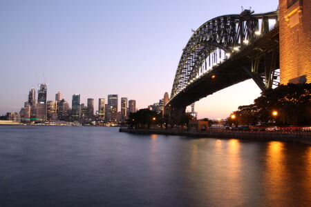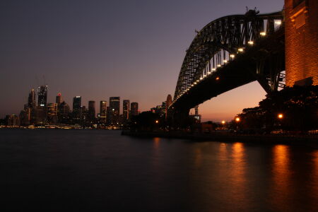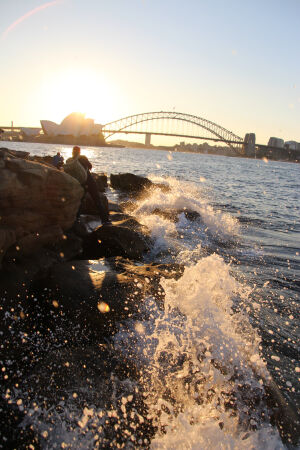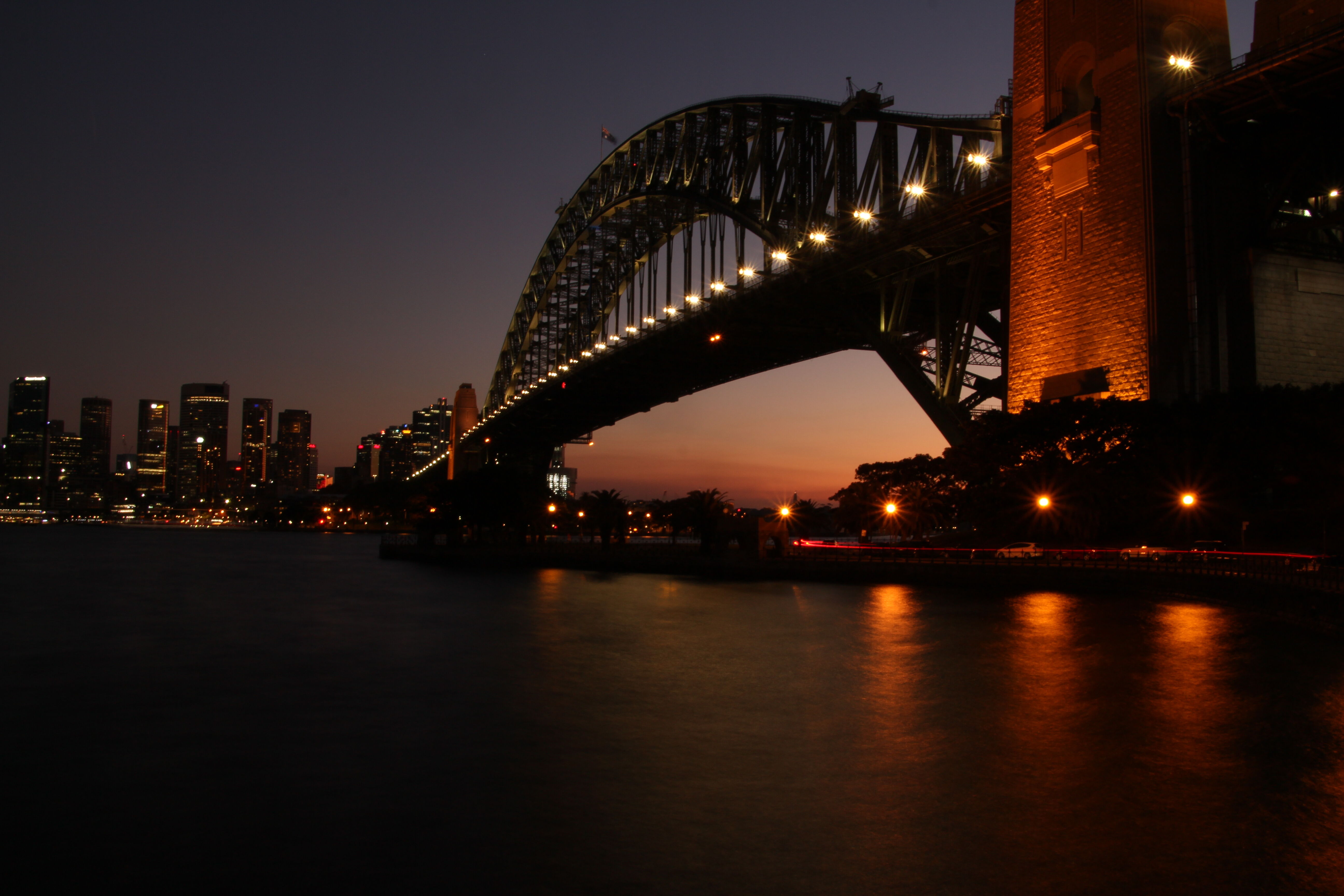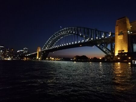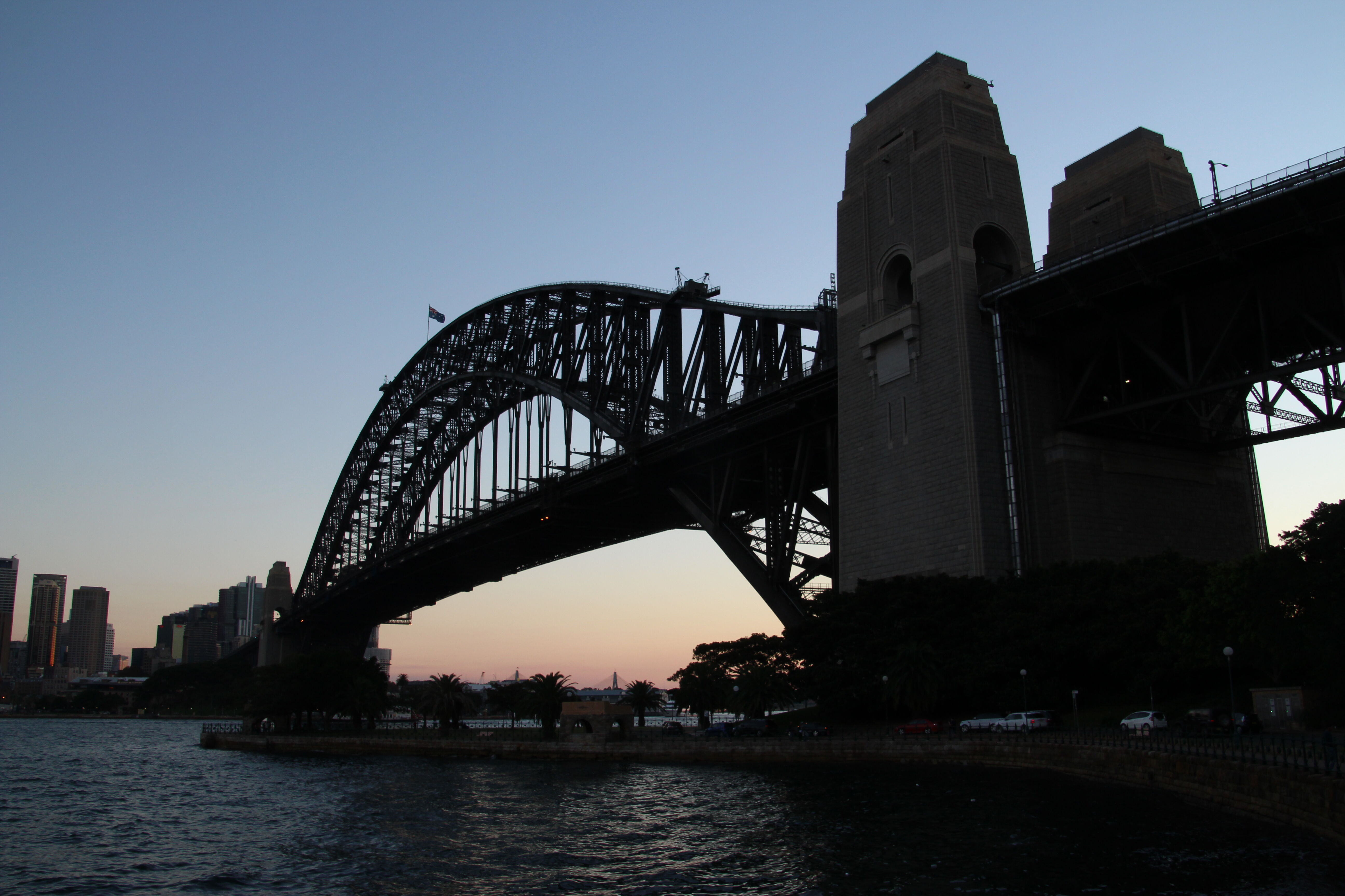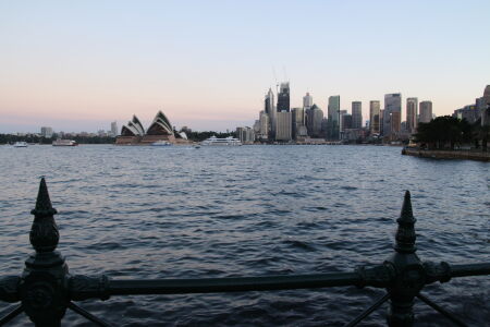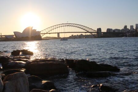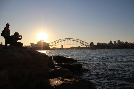 In der Zwischenzeit holte Terry sein Auto, denn weiter ging es zu Mrs Macquarie's Chair. Von hier sieht man von Osten direkt auf das Opernhaus und die Harbour Bridge. Terry zeigte uns seine Lieblingsspots und auf was wir hier zu achten haben. Da er der Meinung ist, dass wir hier auch ohne ihn den Sonnenuntergang fotografieren können, fuhren wir über die Brücke zum Mossman Point. Von diesem Aussichtspunkt aus sieht man die Brücke und die Oper einzeln. Leider wurde die Oper nicht beleuchtet, warum war uns unklar.